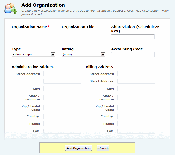 5. Enter administrative and/or billing address and phone information for the organization as needed.