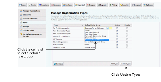 Associating a rate group with an organization type