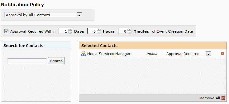• Choose whether the notification must be approved by at least one of the users associated with the notification or all users associated with the notification.